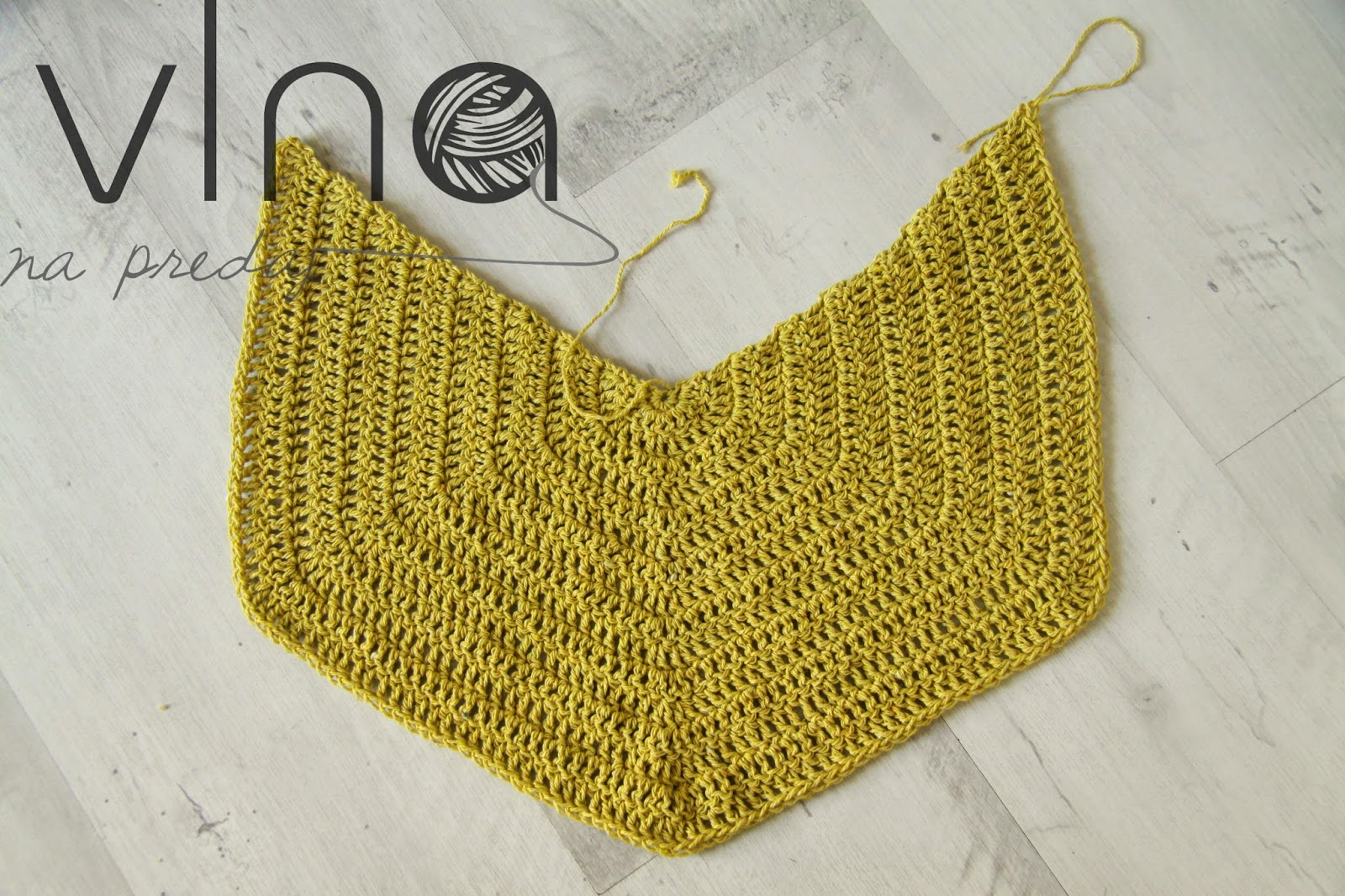 Ja som to mala prispôsobené mojej šírke trička a počtu očiek. Ak budete robiť z tenšej vlny alebo inú veľkosť, treba si to prispôsobiť. Otáčala som to 4 očká pred „špicom“ trička.