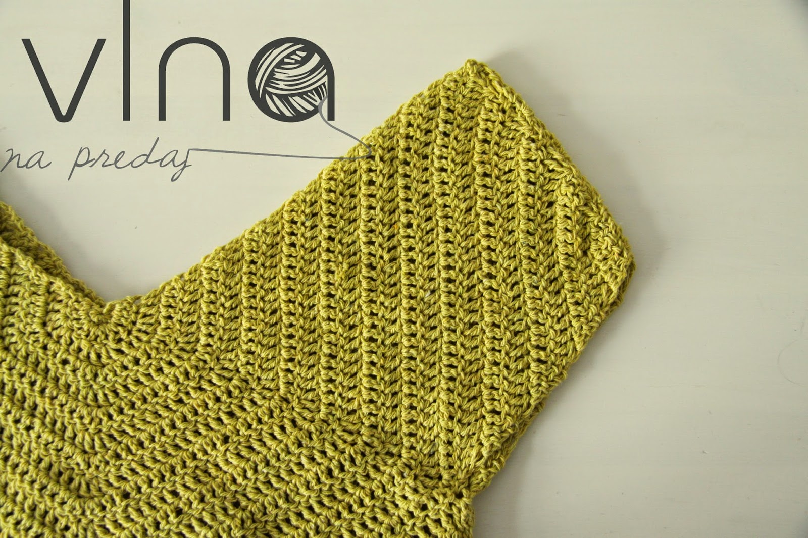 Tričko sa začína háčkovať od výstrihu. Uháčkuje sa telo, priháčkujú sa rukávy, potom druhý identický diel a zošijú sa. Ja som svoje ešte na spodku obháčkovala krátkymi stĺpikmi, aby som ho trochu stiahla, lebo ostalo dosť široké. Nie úplne som to odhadla a párať sa mi už nechcelo.